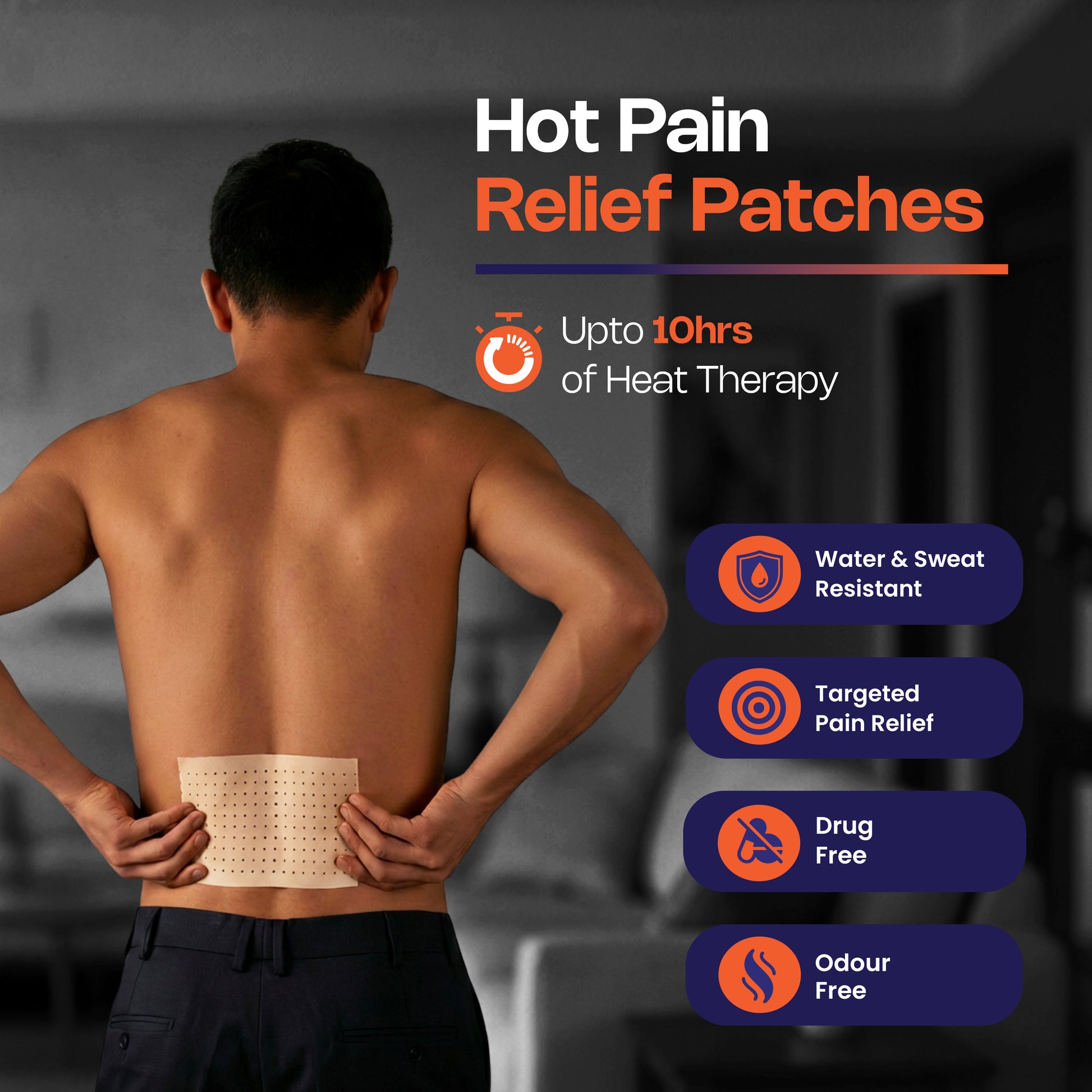 The patch is engineered to provide steady, therapeutic warmth for up to 10 hours. For best results, we recommend wearing it for at least 6–8 hours to allow the Capsicum and Camphor to fully penetrate the muscle tissue. Do not wear a single patch for more than 12 hours.